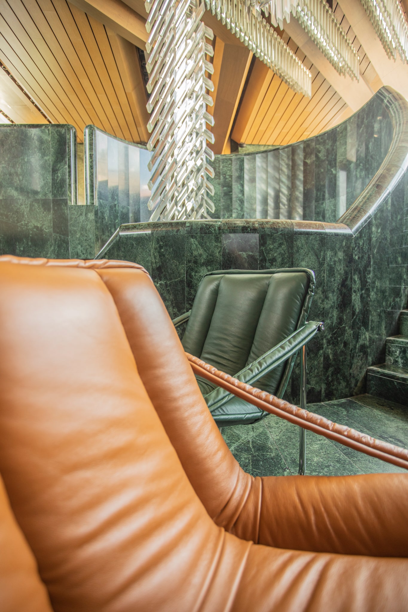 Vnitřní prostory Nové scény jsou rovněž obloženy kubánským serpentinitem (často mylně označovaným jako "zelený mramor"). Jedná se o mimořádně drahý materiál, ale Kuba poskytla kámen jako způsob, jak splatit část dluhu, který měla země vůči tehdejšímu komunistickému Československu.