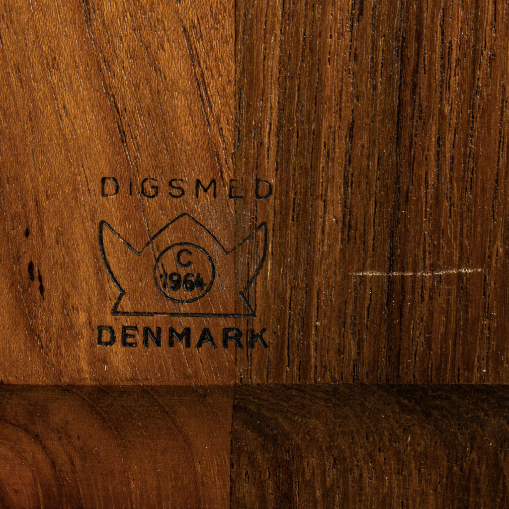 Servírovací misky vyrobené dánskou firmou Digsmed v šedesátých letech. Skleněné misky jsou zasazeny do teakového podnosu, kterým lze otáčet. Celý set je v perfektním stavu. Dřevo bylo vyčištěno a natřeno přírodním olejem na dřevo.