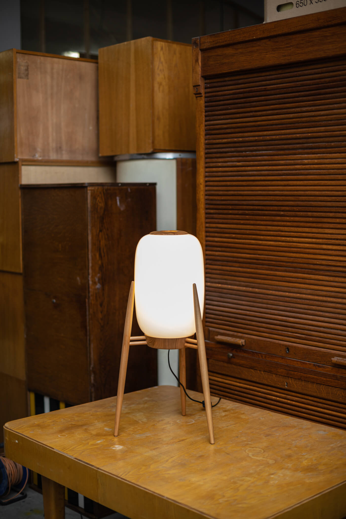 In order to have somewhere to start, we borrowed an existing product from one of our customers and used it to draw up a design. We assumed it would be easy to find a woodturner, but in the end we had to make the wooden tripod ourselves directly in the Nanovo workshop. The glass shade was produced by the glassworks in northern Bohemia.