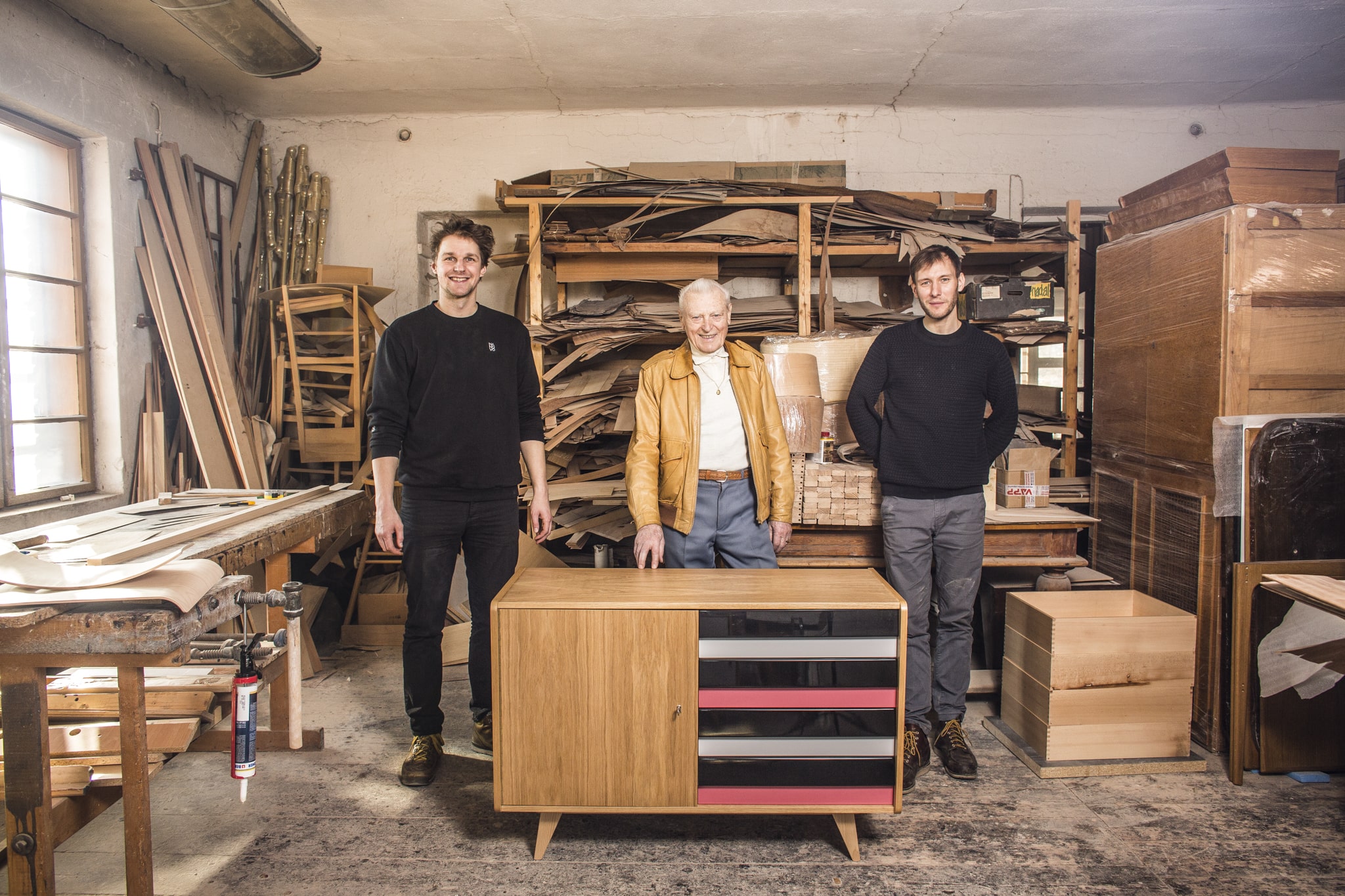 We consulted Mr. Jiroutek on every detail, and the new cabinets are exact copies of his original design. The one small change we made was to upgrade the original plywood drawers to solid beech. We officially launched the new product at Designblok 2018.