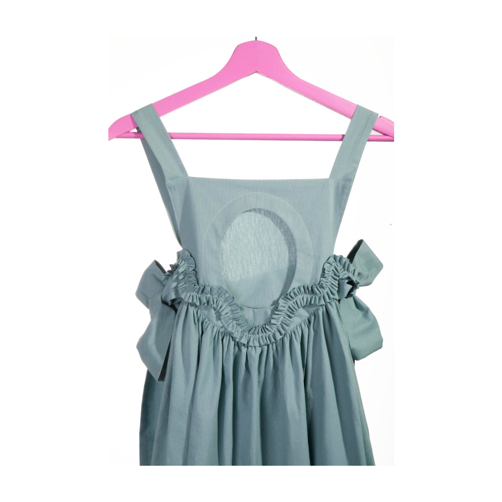 The cotton dress is based on a 15 cm hem. This length makes it possible to adjust the dress to fit a child's growth up to 5 years. The dress has pockets.