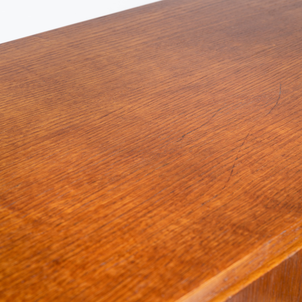 The U-458 is suitable for any room. It is compact and relatively light, making it easy to handle. It is divided into a storage section with a lengthwise shelf and a section with four drawers in grey with black handles. The cabinet has a veneered (oak) surface and a solid wood base. We have consulted Jiří Jiroutek, from whom we also have the exclusive right to renew the production of the entire U-450 series from 2018.