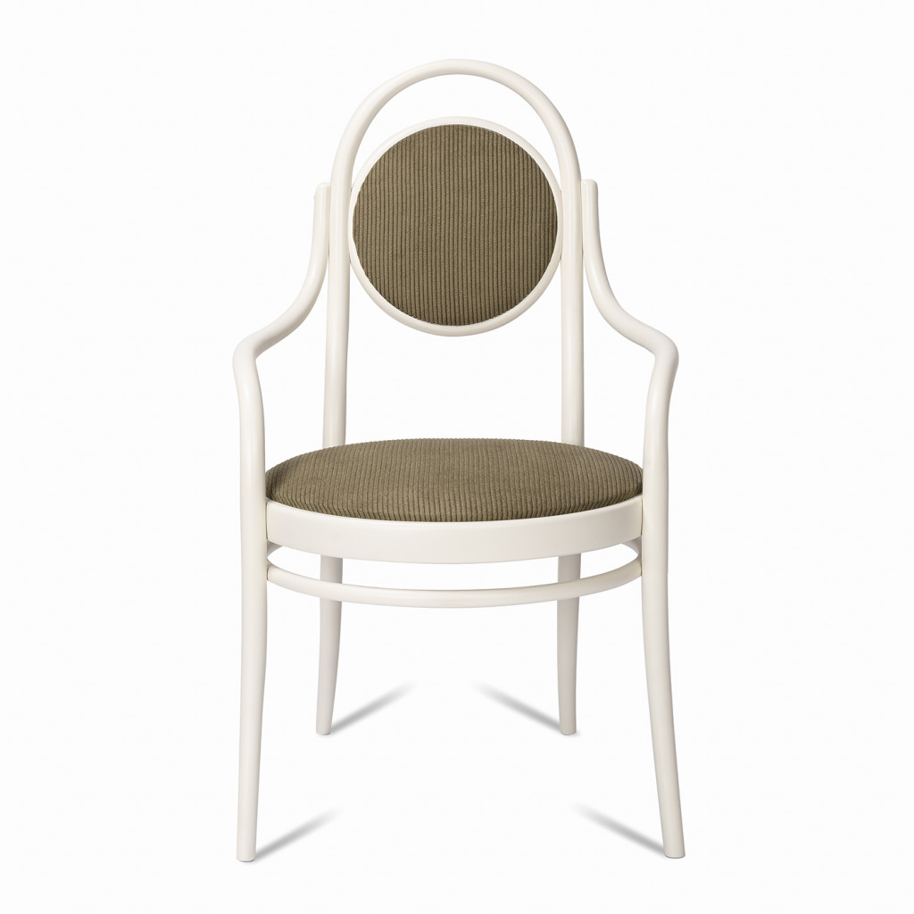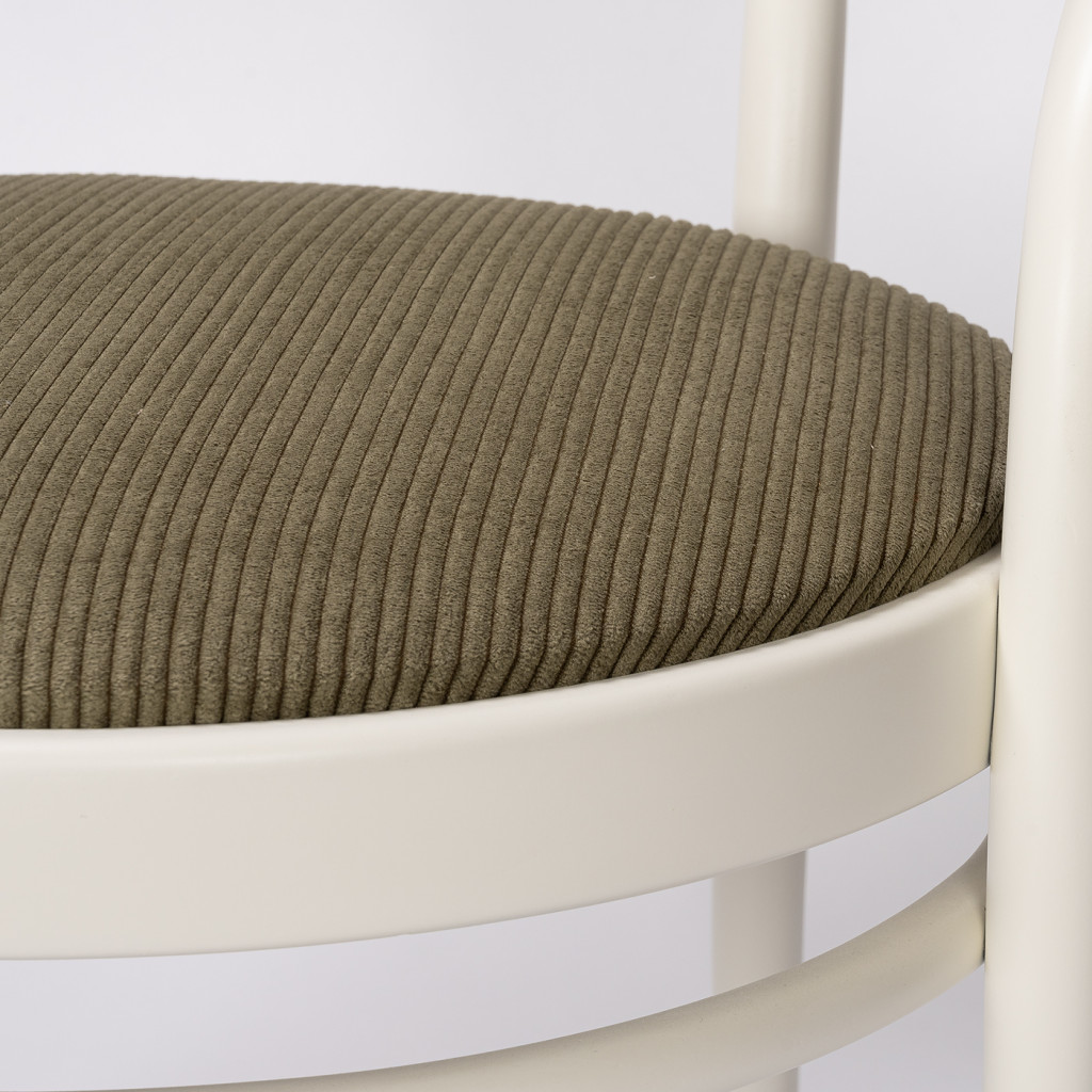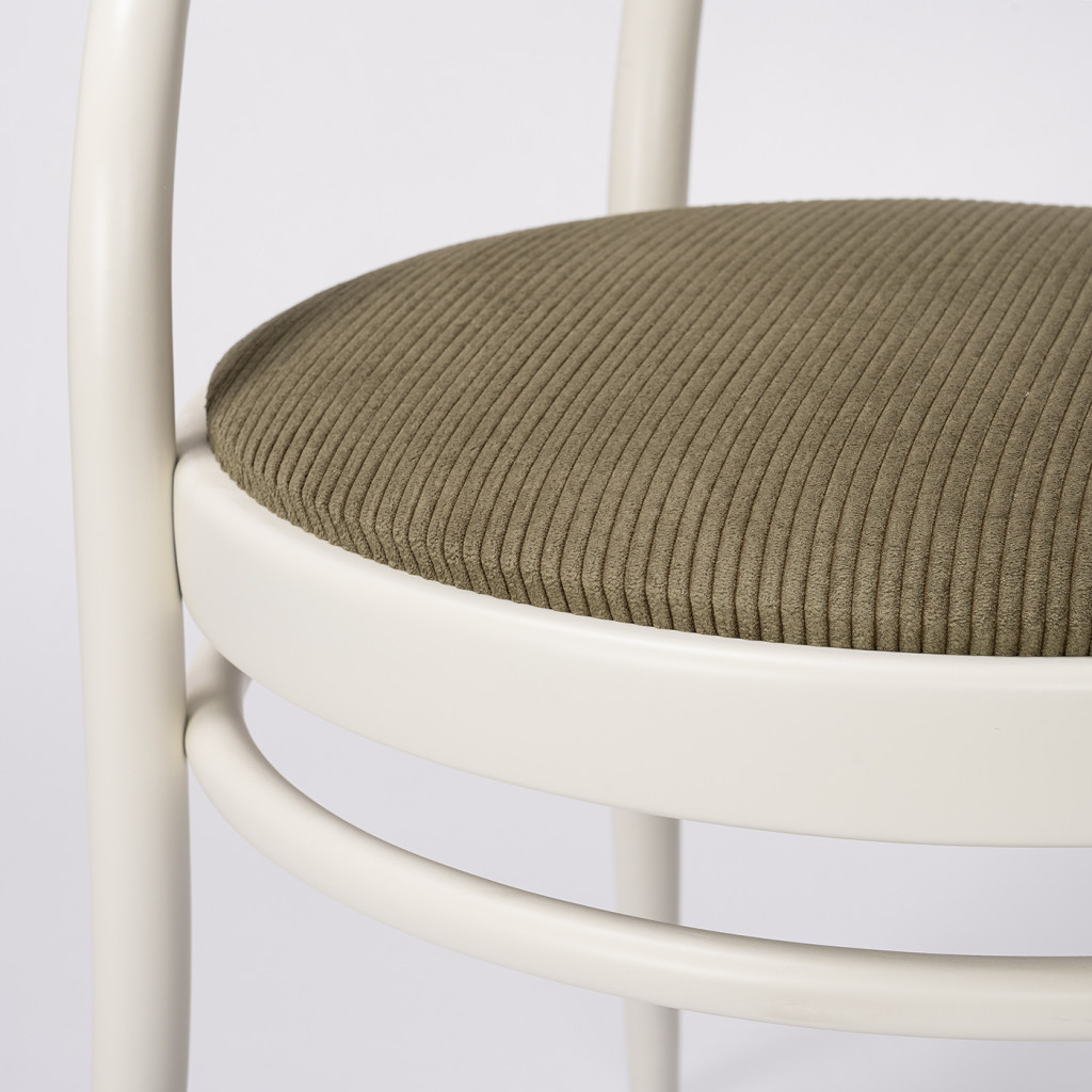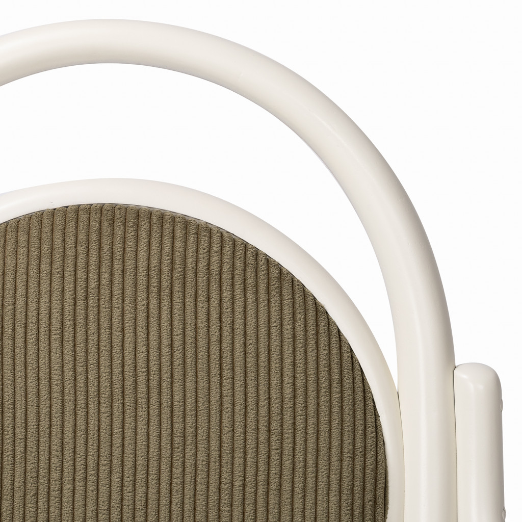 The wooden parts were completely renovated in our workshop and the original seat and backrest were reupholstered in green corduroy fabric.