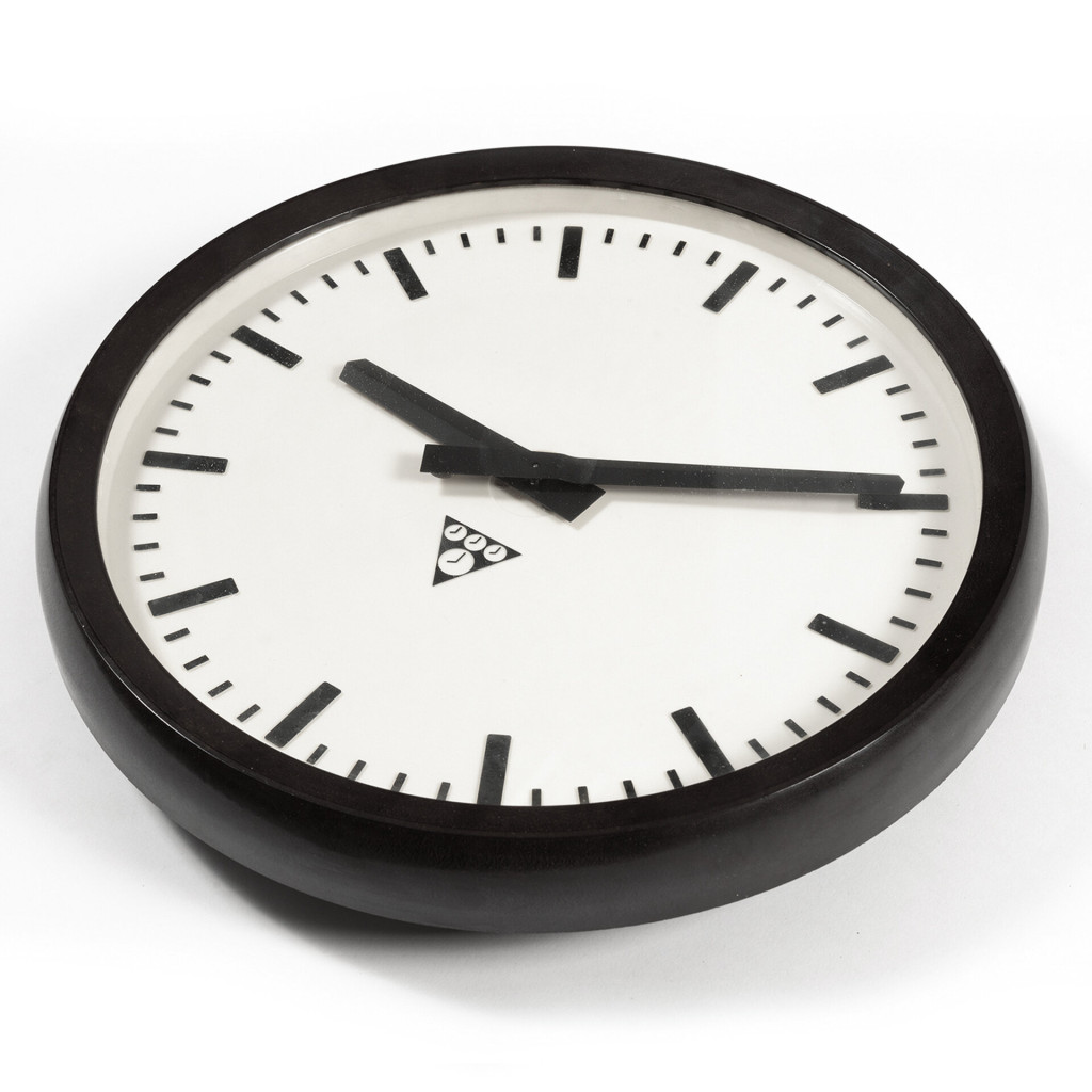 Hodiny s označením PV 274 od firmy Pragotron, výrobce hodin, které jsou nedílnou součástí českého veřejného prostoru, najdete je na nádražích, ve školách a jiných veřejných budovách. Jedná se o model v tmavě hnědém provedení s kontrastním ciferníkem s výraznými ručičkami. Hodiny Pragotron jsou typické svým jednoduchým designem, klasický číselný ciferník je pro větší přehlednost abstrahován na výrazné pětiminutové značky, dále na něm najdeme už jen klasické trojúhelníkové logo firmy. Rám je vyroben z bakelitu, plechový ciferník je krytý sklem. Hodiny jsou přestavěné na bateriový strojek napájený 1 x AA baterií, fungují jako nezávislé nástěnné hodiny.