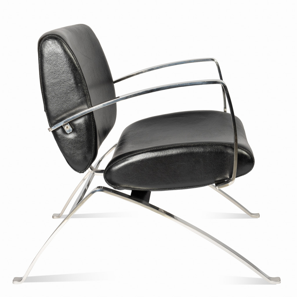 Kožené křeslo Dodo F396 vyrobeno podle návrhu nizozemského designéra René Holtena pro firmu Artifort. René Holten se narodil roku 1961 v nizozemském Maastrichtu a je známý svými inovativními výtvory v oblasti nábytku a osvětlení. Křeslo má jednoduchou chromovou linii. Sedák s opěrákem jsou potaženy pravou kůží. Chromová konstrukce křesla i sedák jsou v perfektním původním stavu bez jakéhokoliv poškození.