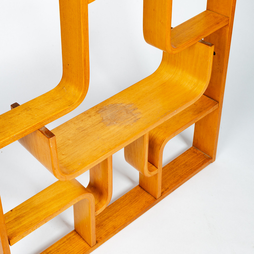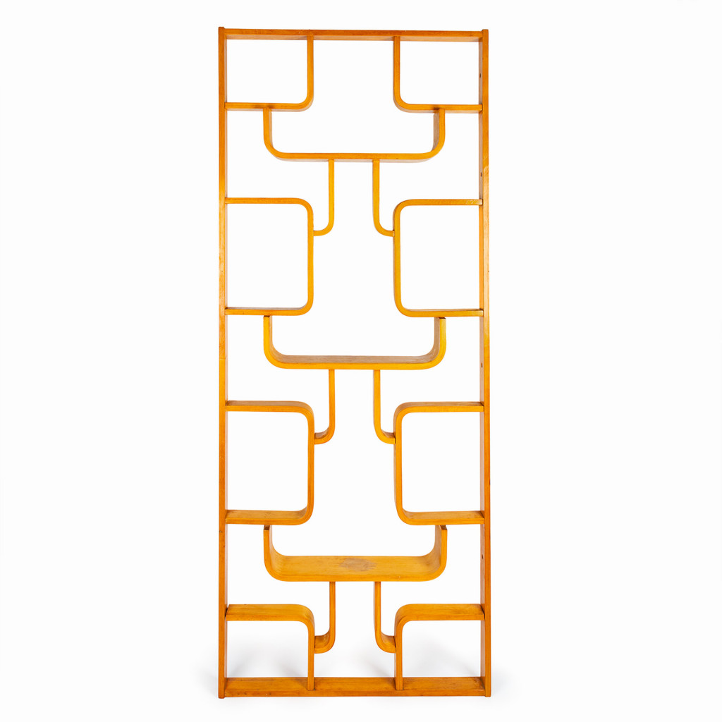 Květinová dělící stěna vyrobena v šedesátých letech. Návrh je přisuzován designérovi Ludvíku Volákovi pro Dřevopodnik Holešov. Dřevopodnik vznikl roku 1958 a sjednocoval řemeslné práce specializované na dřevěné výrobky. Nejznámějším kouskem Dřevopodniku byla právě tato květinová stěna. Konstrukce stěny je z ohýbané bukové překližky s jasanovou dýhou. Poličky vytvářejí geometrickou kompozici, které slouží pro umístění květin. Povrchová úprava je na některých místech mírně poškozená.
