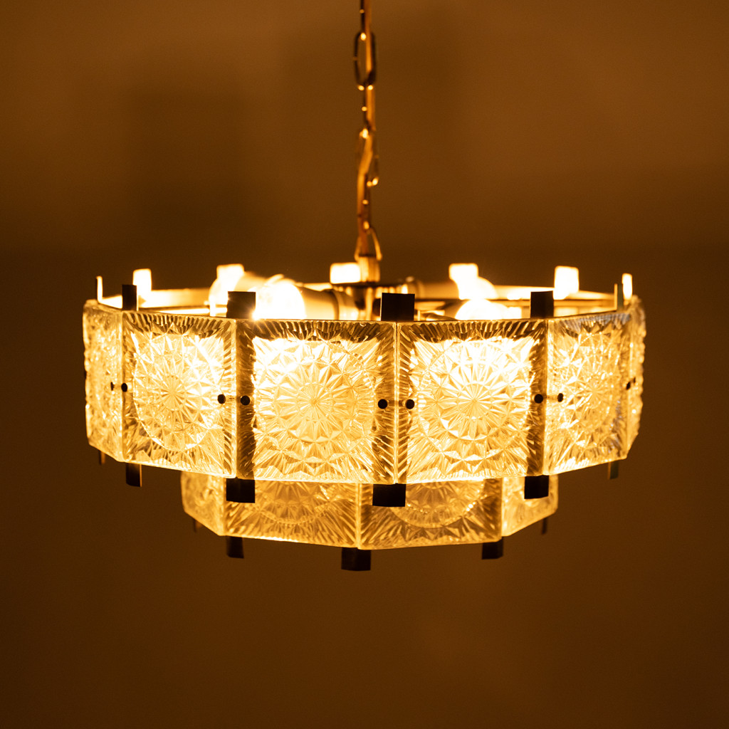 Lustr byl důkladně vyčištěn, je ve skvělém původním stavu a plně funkční. Svítí na čtyři žárovky E27.