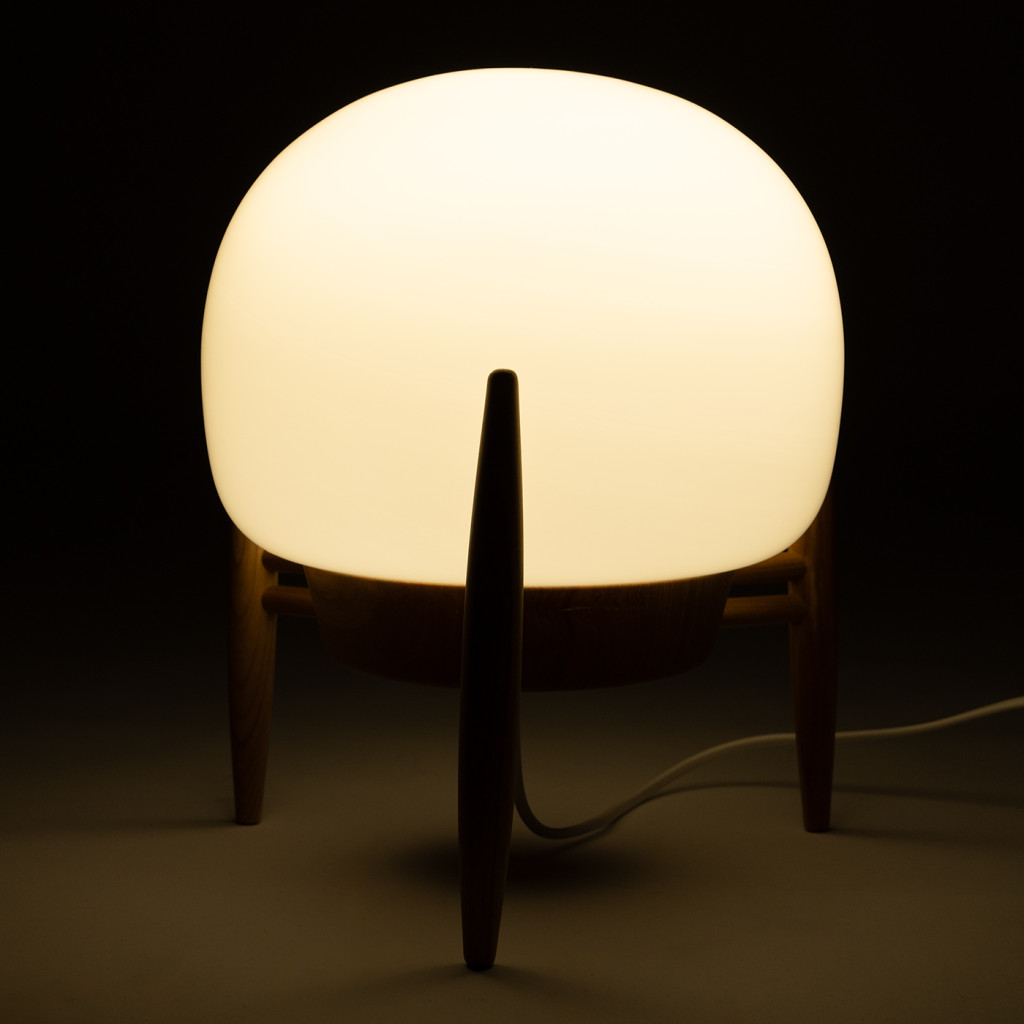 Lampa je kompletně ručně vyrobena v České republice z třešňového dřeva a foukaného mléčného skla. Skládá se z dřevěné trojnožky, ve které je zabudovaný závit pro žárovku. Do trojnožky se nasazuje stínidlo oválného tvaru z mléčného skla, které vytváří příjemně rozptýlené světlo.