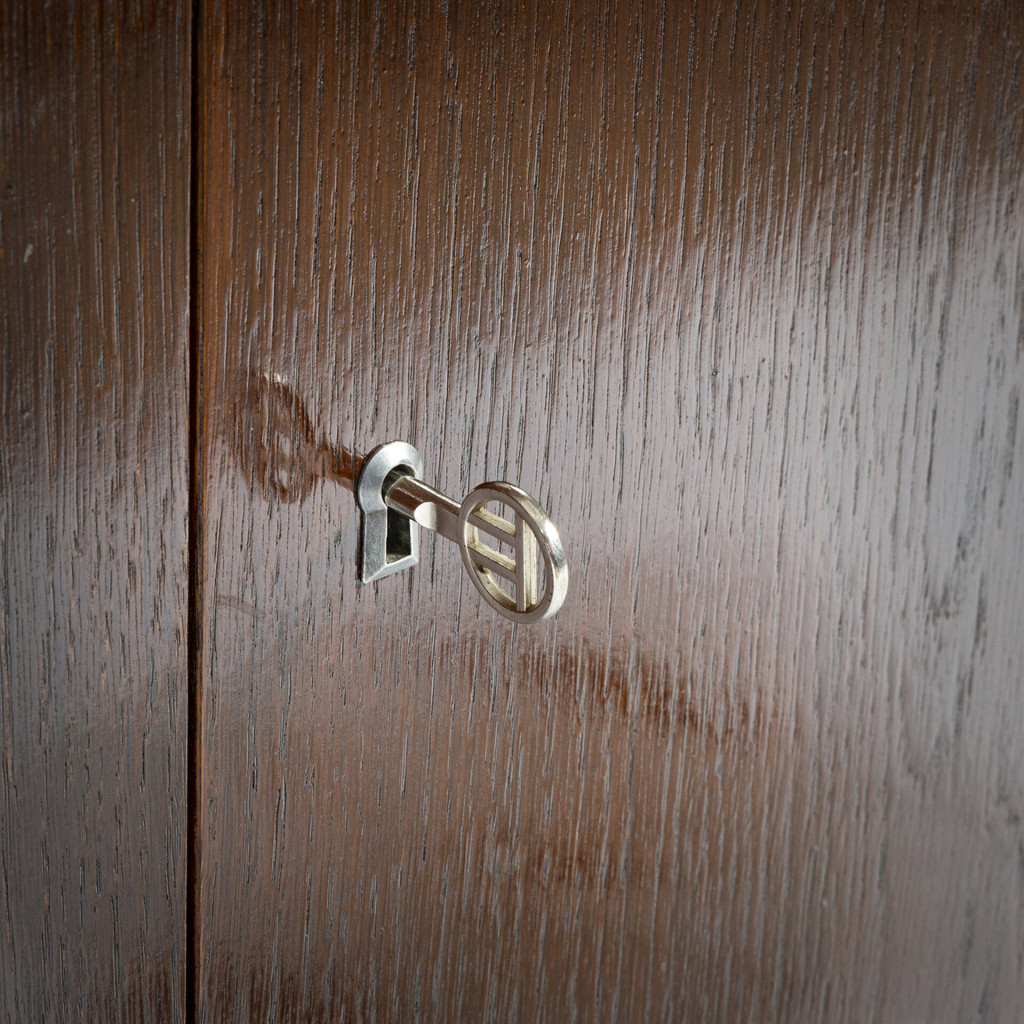 Skříňka pocházející ze slavné série Universal (U-450), kterou navrhl v roce 1958 pro československý národní podnik Interiér Praha designér Jiří Jiroutek.