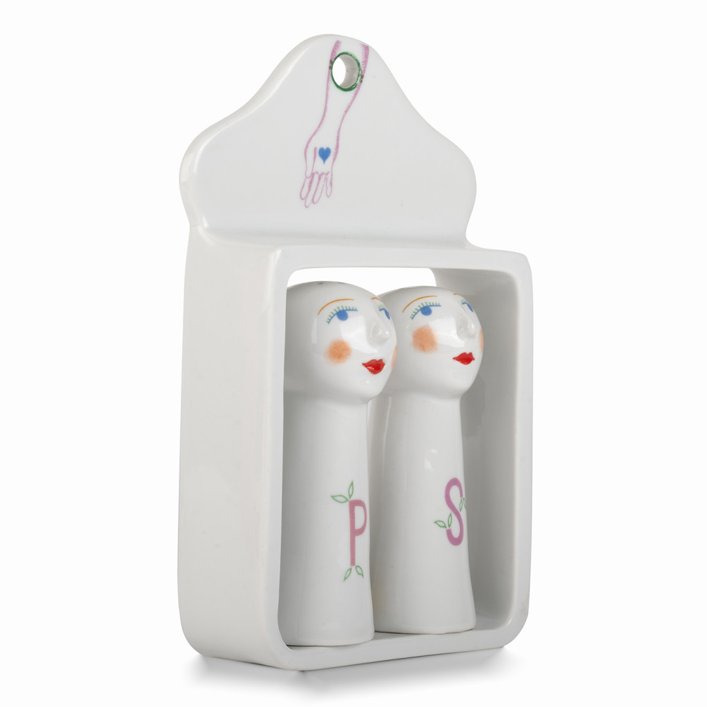Půvabná dvojice slánky a pepřenky z 80. let navržená českou sochařkou a keramičkou Jindrou Vikovou a vyrobená porcelánkou Royal Dux Bohemia v Duchcově. Viková studovala na Vysoké škole uměleckoprůmyslové v ateliéru keramiky u prof. Otto Eckerta. V roce 1975 navrhla spolu se sochařem Petrem Orieškem mozaiku pro Staroměstskou radnici v Praze. Věnuje se především keramické a porcelánové tvorbě, digitální koláži a asambláži a konceptuálnímu umění. Její díla tvoří součást mnoha tuzemských i evropských muzeí a sbírek.