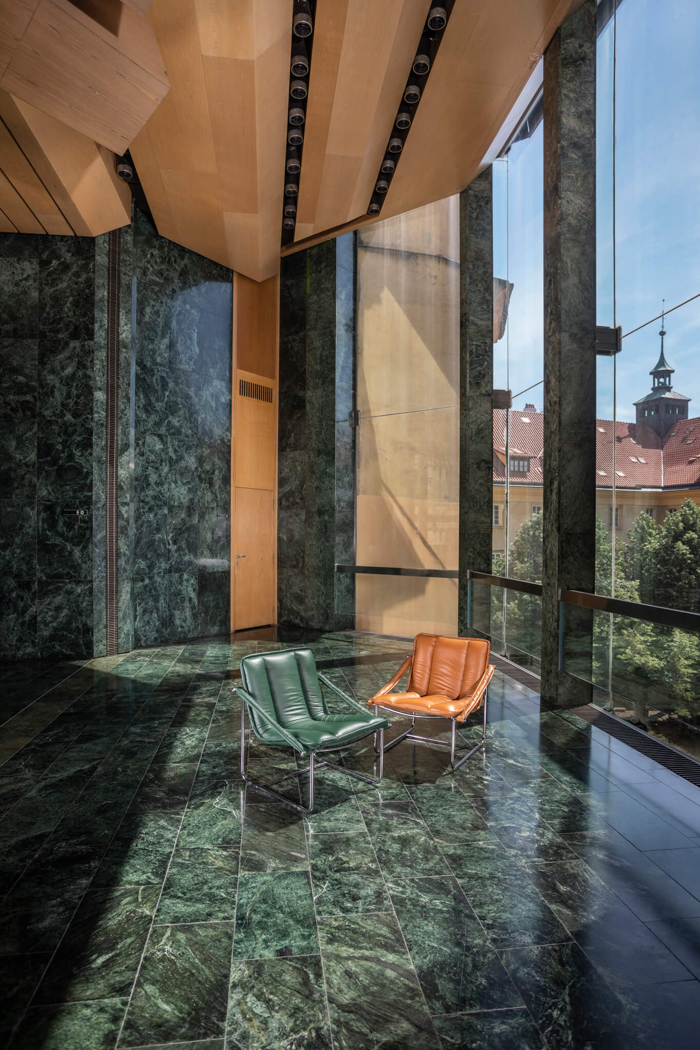 Vnitřní prostory Nové scény jsou rovněž obloženy kubánským serpentinitem (často mylně označovaným jako "zelený mramor"). Jedná se o mimořádně drahý materiál, ale Kuba poskytla kámen jako způsob, jak splatit část dluhu, který měla země vůči tehdejšímu komunistickému Československu.