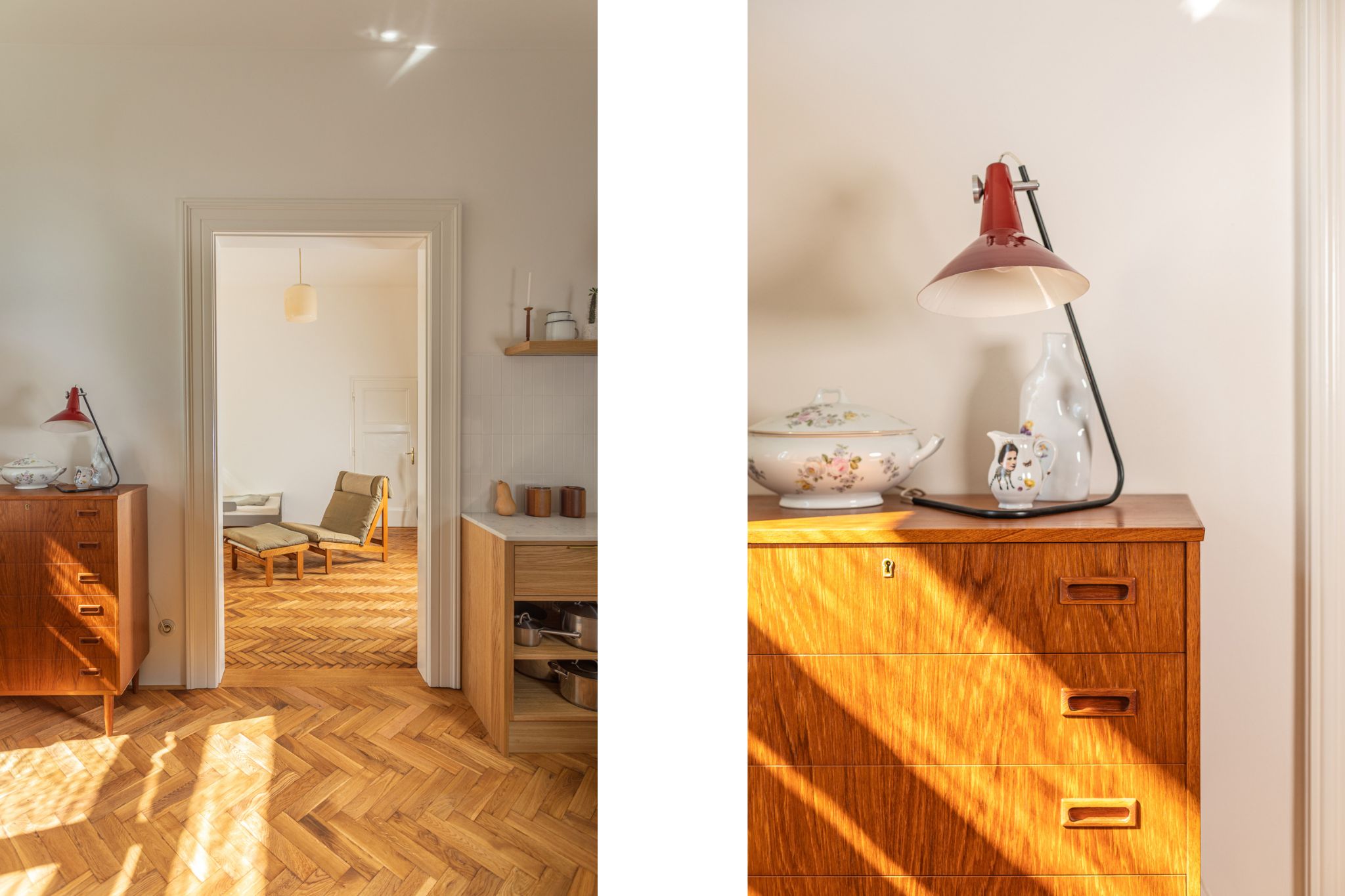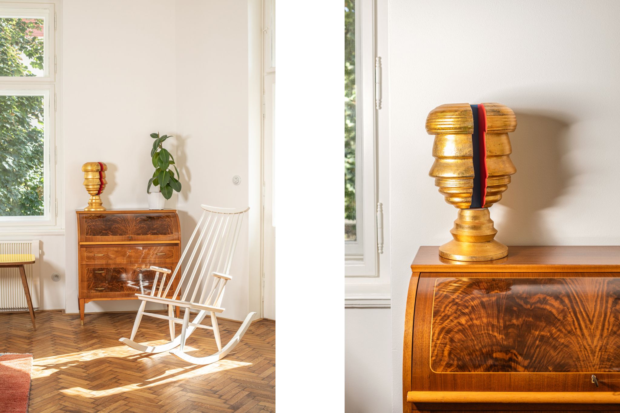 A secretary designed by Egon Ostergaard and a rocking chair inspired by the design of Lena Larsson and Ilmara Tapiovaara. Photos by Dita Havránková