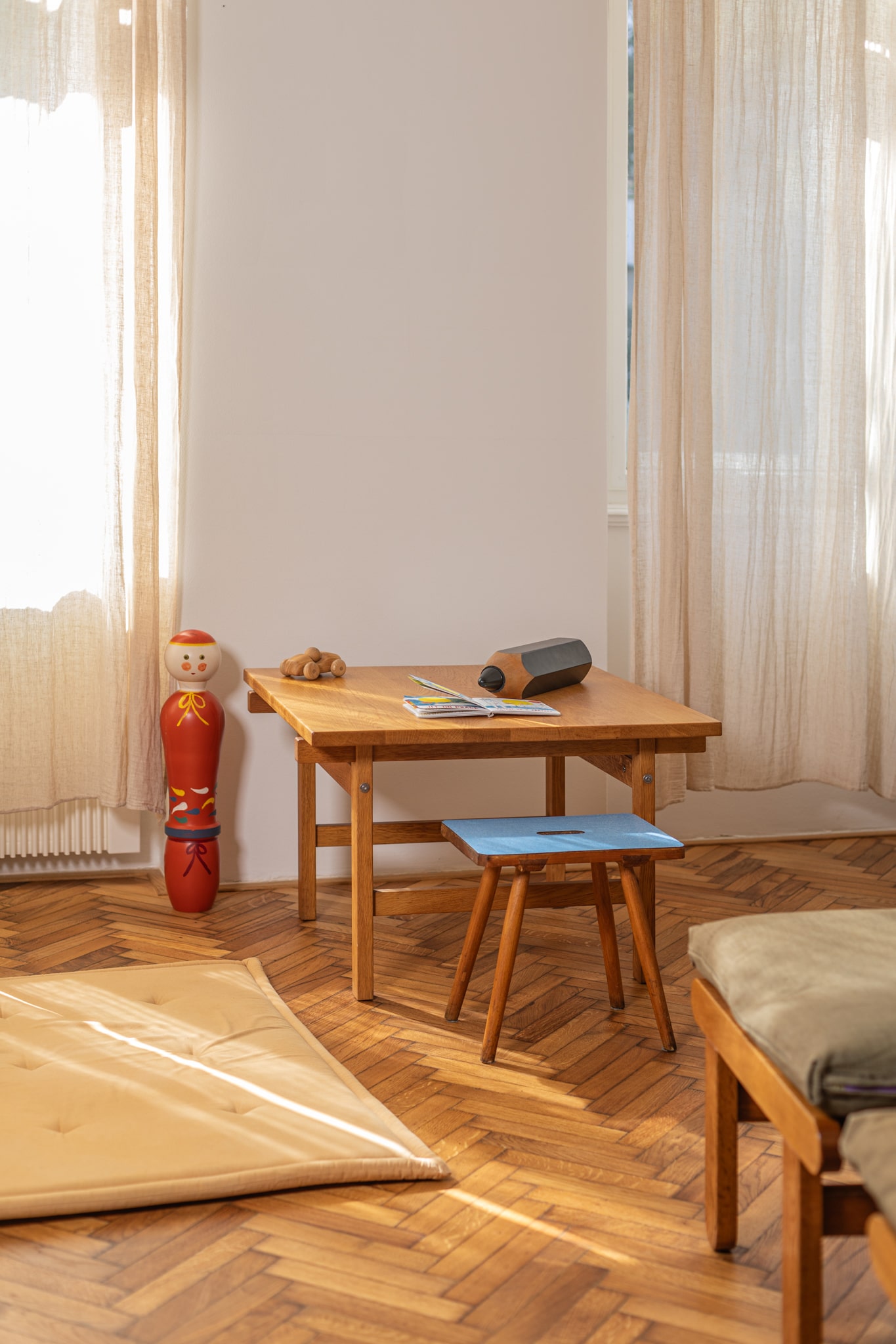 Hans J. Wegner coffee table and wooden doll by Antonín Hepnar. Photos by Dita Havránková