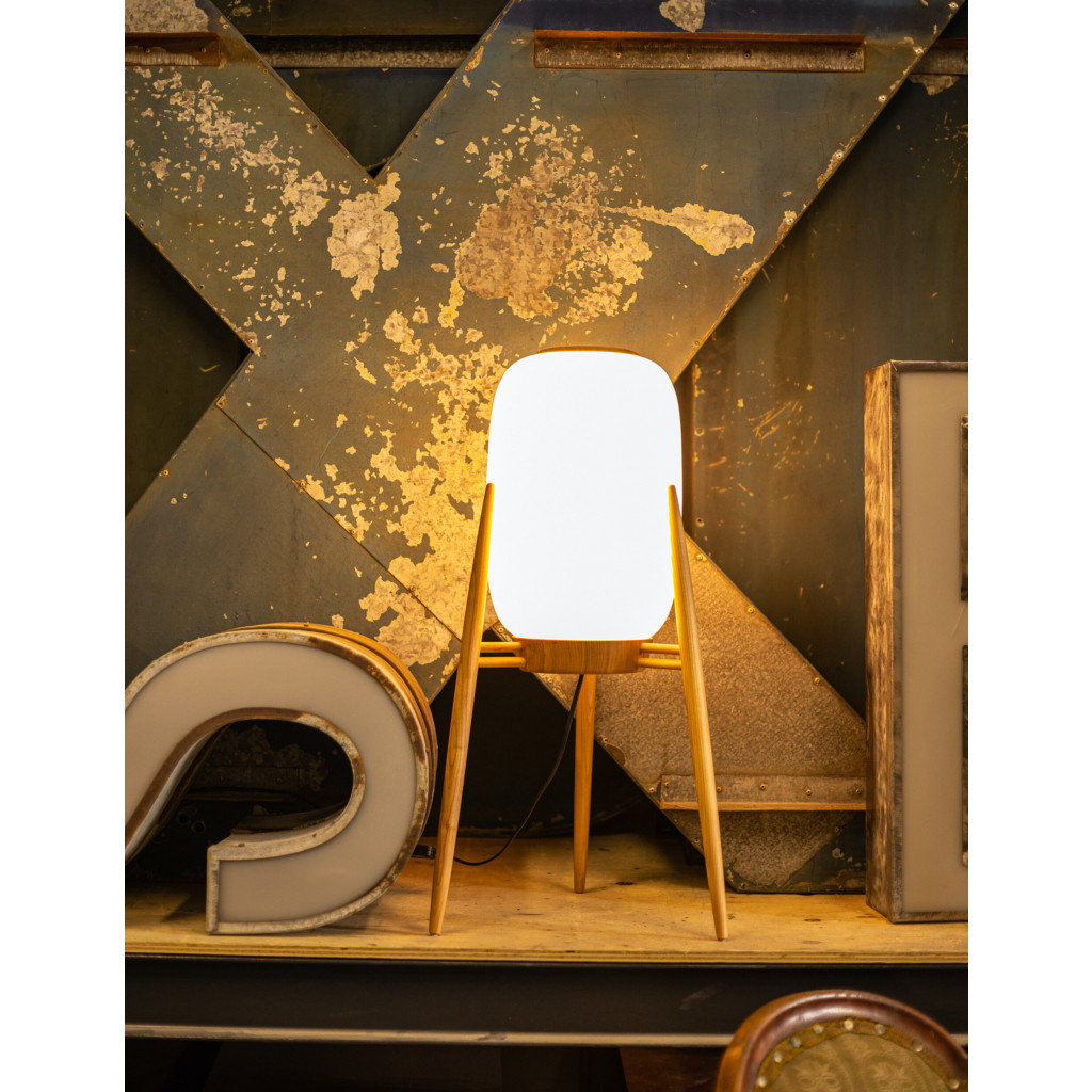 Lampa je kompletně ručně vyrobena v České republice z třešňového dřeva a foukaného mléčného skla. Skládá se z dřevěné trojnožky, ve které je zabudovaný závit pro žárovku. Do trojnožky se nasazuje stínidlo oválného tvaru z mléčného skla, které vytváří příjemně rozptýlené světlo.