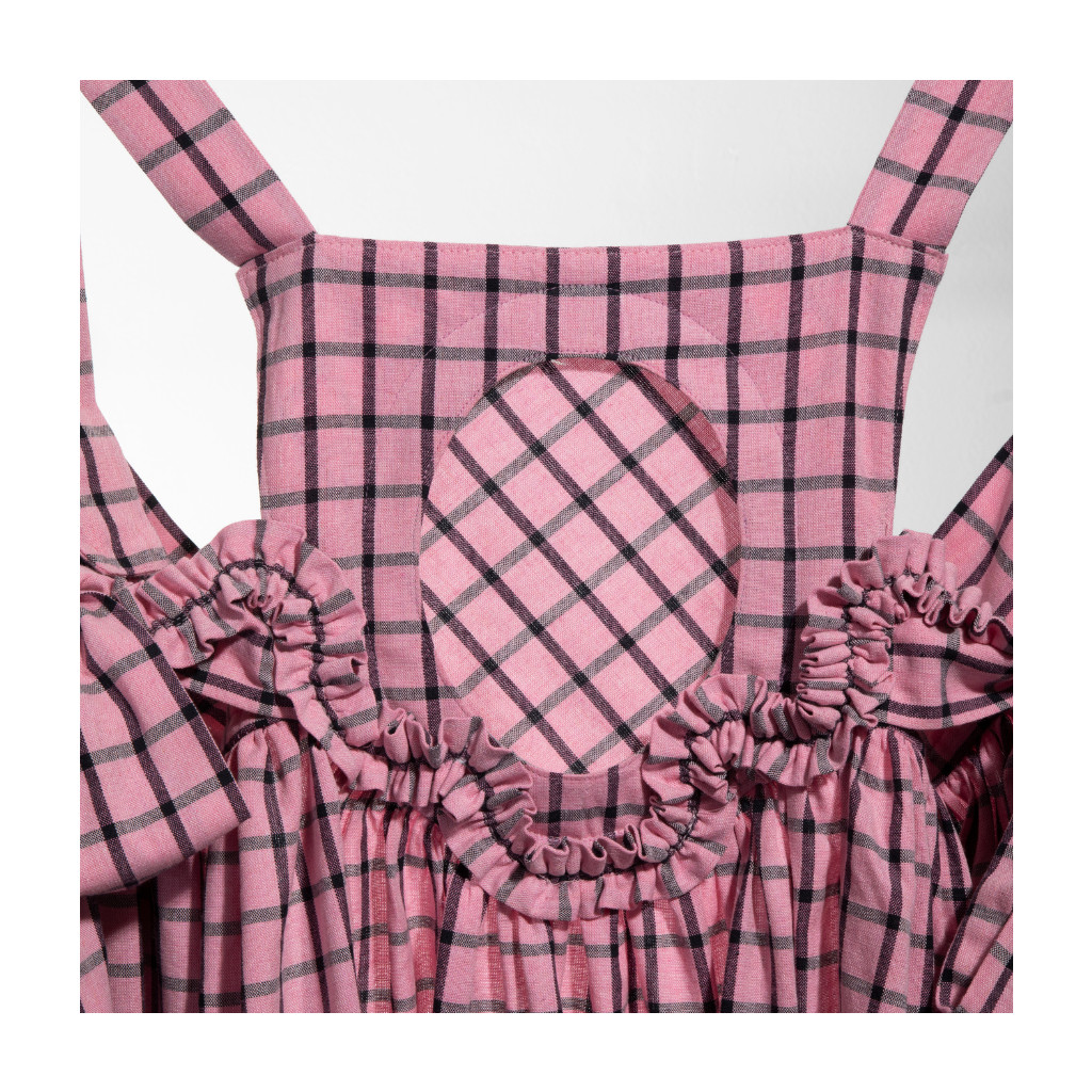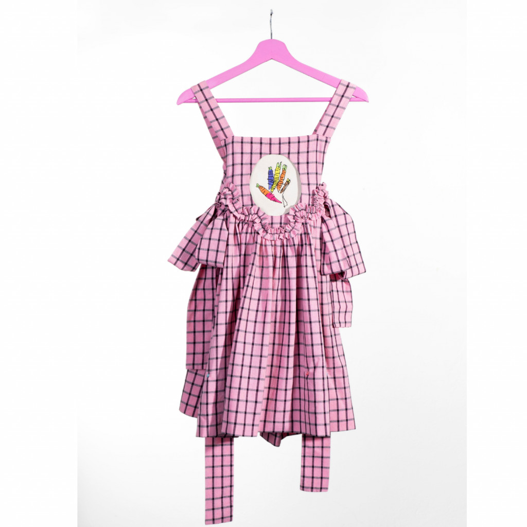 Dětské, rostoucí, kostkované šaty s vyjímatelnou výšivkou, jejíž motiv si dítě navrhne samo, vznikly jako spolupráce oděvní designerky Kateřiny Plamitzerové a grafického designera Františka Kasta (Kirka studio).