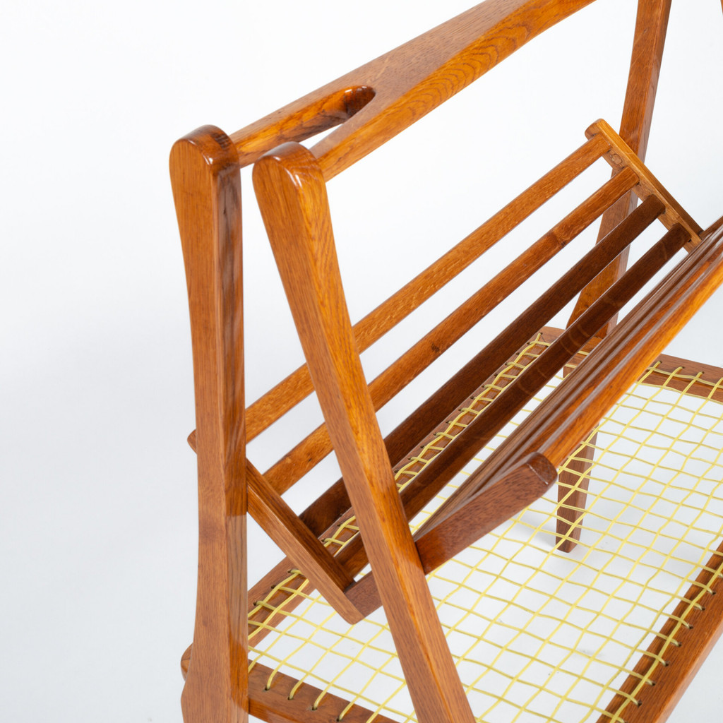 Dřevěný stojan je vyrobený z dubového dřeva. Prošel kompletní renovací v naší dílně, včetně nového výpletu.