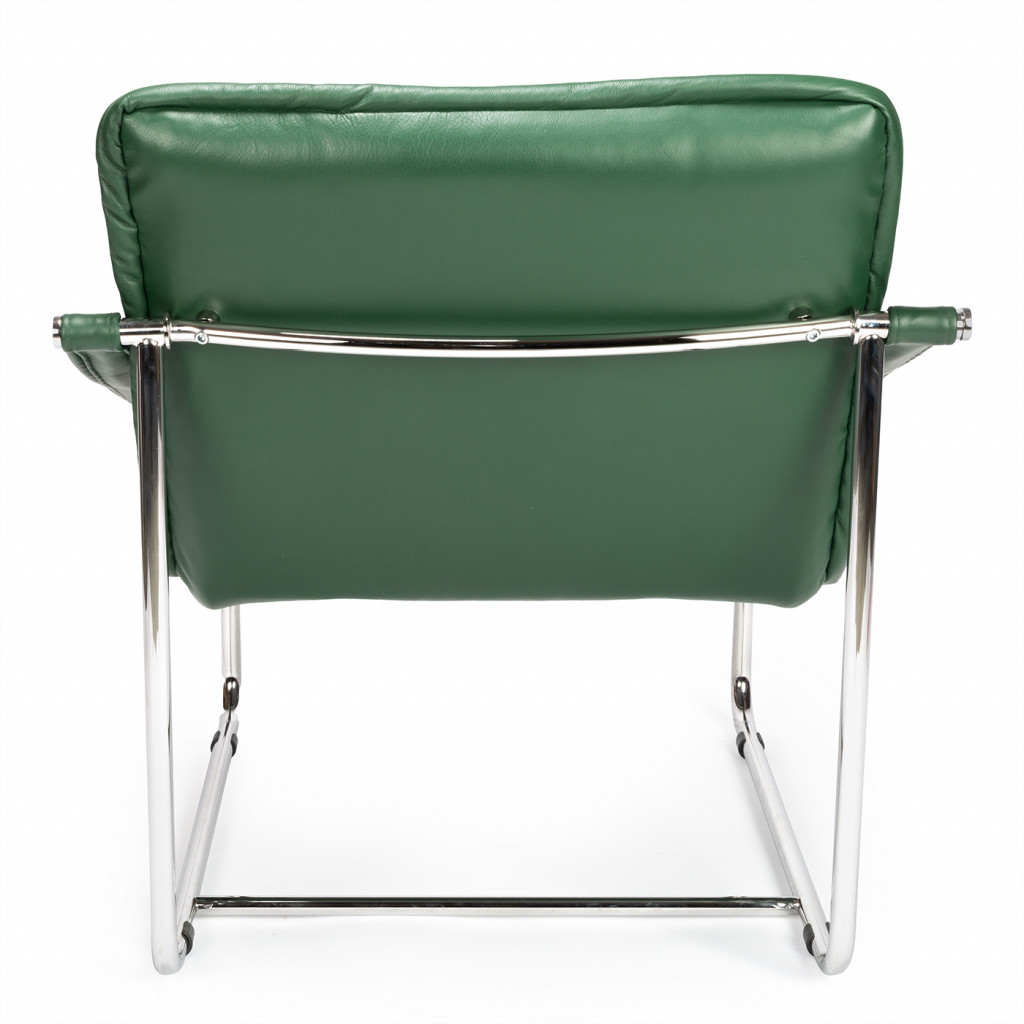 This replica armchair features a metal chrome frame and leather upholstery. This specific design was produced only for the New Stage of the National Theatre.