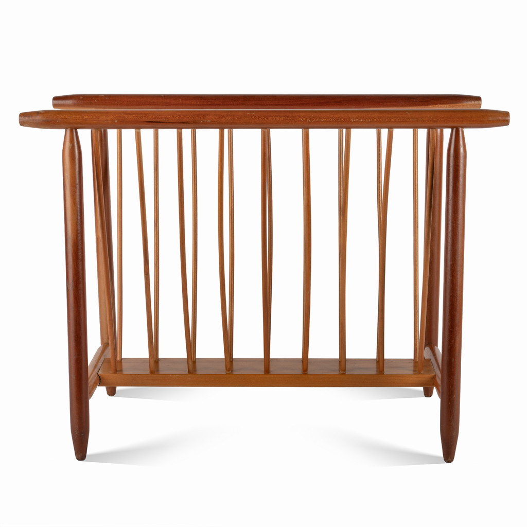 Wooden newspaper rack made in the 1960s by the company ÚLUV. It was established in 1948 by an association of several brands, including the well-known Krásná jizba, which functioned as a showroom and also hosted exhibitions and cultural events. It focused on the sale of folk and artistic handicrafts made from natural materials. The wooden stand is made of beech wood stained in a rich brown shade. It is in very good original condition and has only slight scratches, which can be seen in the photos.