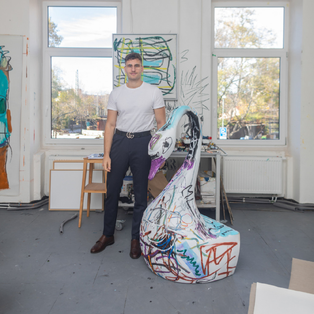 The “Trophy” swan is part of the Swans project, which was created as a tribute to director Věra Chytilová’s film The Inheritance, or Fuckoffguysgoodday. To celebrate the 30th anniversary of the film, we approached three artists and designers to create artworks out of one of its iconic symbols: a full-sized carousel swan. The weight of the swan is 25,5 kg.