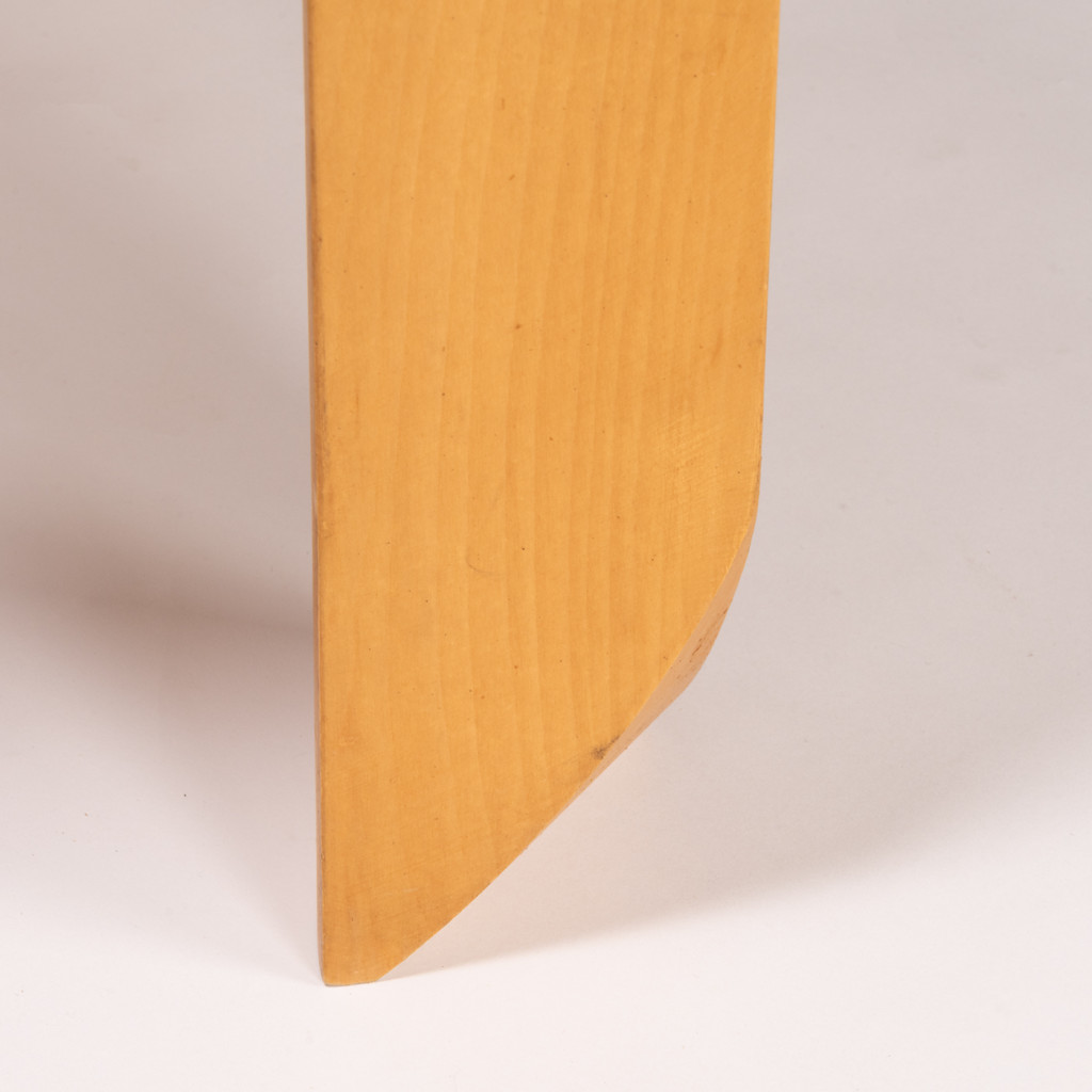 This unique wooden table was designed and crafted by Antonín Hepnar, a Czech artist also known as the master of woodturning. Hepnar developed his love of craftsmanship and woodworking as a child in his father's workshop. He further honed his woodturning skills and sense of materials at the Secondary School of Arts and Crafts in Prague's Žižkov district. His final school project was the now iconic Amanita lamp. Fifty-seven years later, in 2010, Hepnar won the main prize at the Designblok show. Hepnar became famous for his unique lamps, which bore his unmistakable signature, and he produced and hand-painted his designs himself. His favourite wood to work with was hardwood from deciduous trees. It is said that he made each design in no more than five pieces.