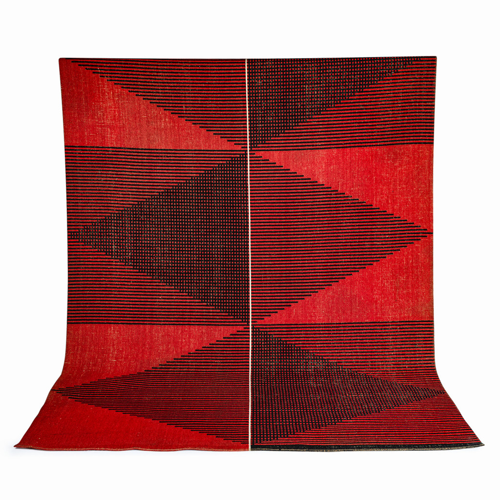 A woven rug from the 1960s, which bears a strong resemblance to the work of Antonín Kybal, a textile artist and the founder of the Kybal Textile School at the Academy of Arts, Architecture & Design in Prague. Kybal had a strong influence on his students, and their work is often indistinguishable from his, so this rug may have been made by one of his pupils. The rug features a simple geometric pattern, typical of Kybal's work in the 1950s. The rug was made using the flat weaving technique, and it is in very good condition.