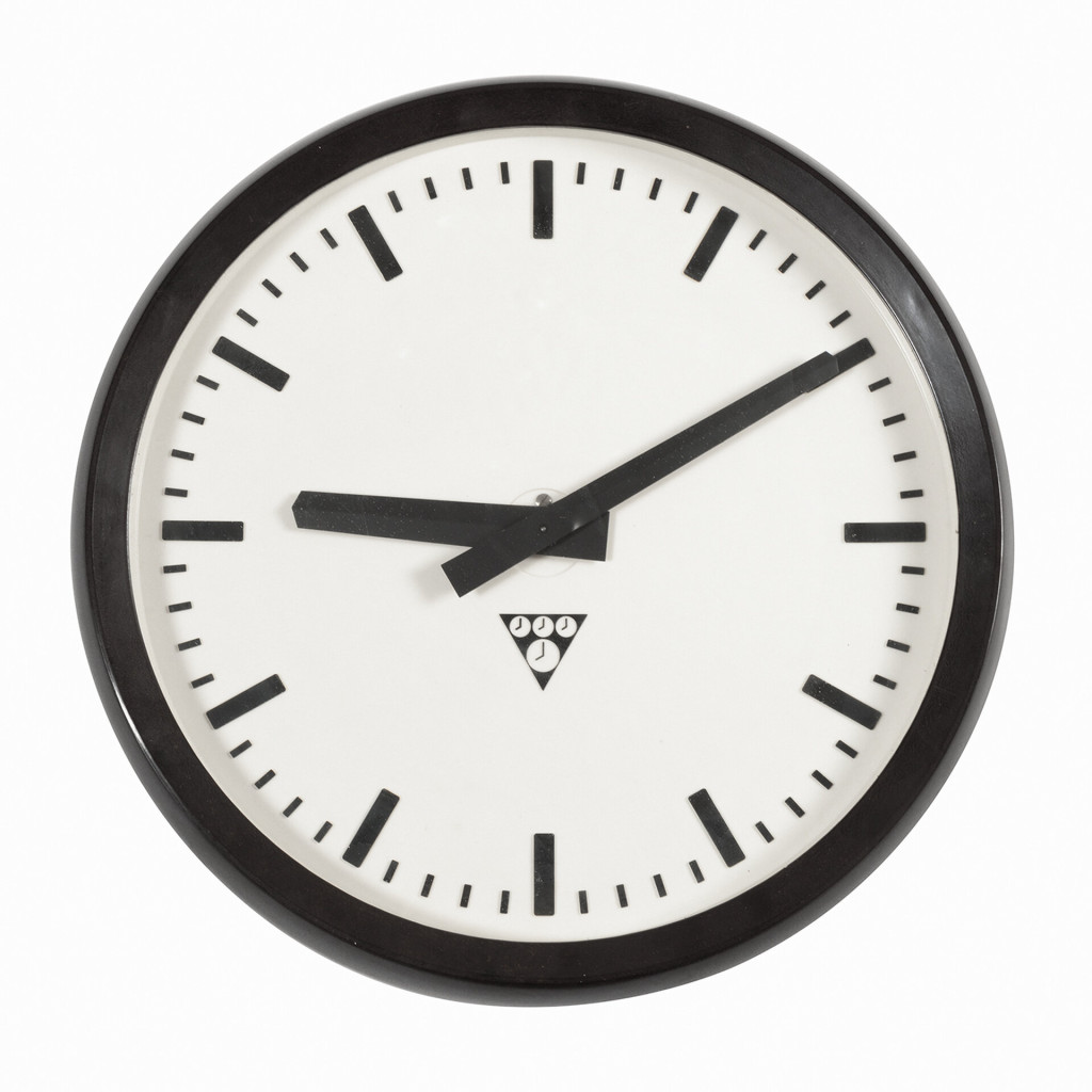 Hodiny s označením PV 274 od firmy Pragotron, výrobce hodin, které jsou nedílnou součástí českého veřejného prostoru, najdete je na nádražích, ve školách a jiných veřejných budovách. Jedná se o model v tmavě hnědém provedení s kontrastním ciferníkem s výraznými ručičkami. Hodiny Pragotron jsou typické svým jednoduchým designem, klasický číselný ciferník je pro větší přehlednost abstrahován na výrazné pětiminutové značky, dále na něm najdeme už jen klasické trojúhelníkové logo firmy. Rám je vyroben z bakelitu, plechový ciferník je krytý sklem. Hodiny jsou přestavěné na bateriový strojek napájený 1 x AA baterií, fungují jako nezávislé nástěnné hodiny.