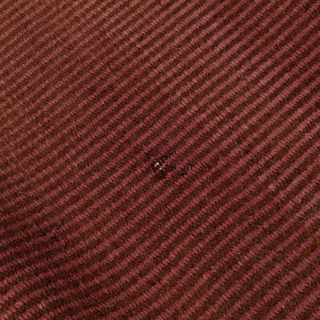 Jednoduchý koberec vyroben v padesátých letech. Odstín koberce je hnědé barvy s podélnými pruhy. Na krajích jsou typické třásně, které jsou častou součástí koberců. Koberec byl kompletně vyčištěn.