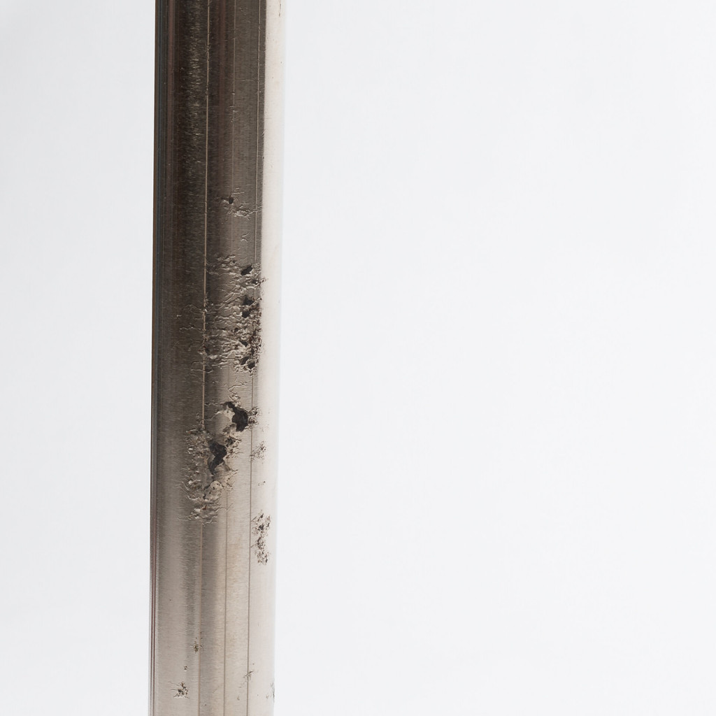 Konferenční stolek vyroben v roce 1978 v Okresním podniku pro místní rozvoj Sokolov, podle konstrukčního návrhu Petra Šváchy. Stolek je vybaven podelným tvarovým designem a čtyřmi pochromovanými nohami, které poskytují stabilní základ. Konstrukce je u spodní části spojena dalšími čtyřmi trubkami a vrchní deska je podýhovaná překližka. Dřevěné části byly renovovány v dílně a chromové části byly pečlivě vyčištěny.