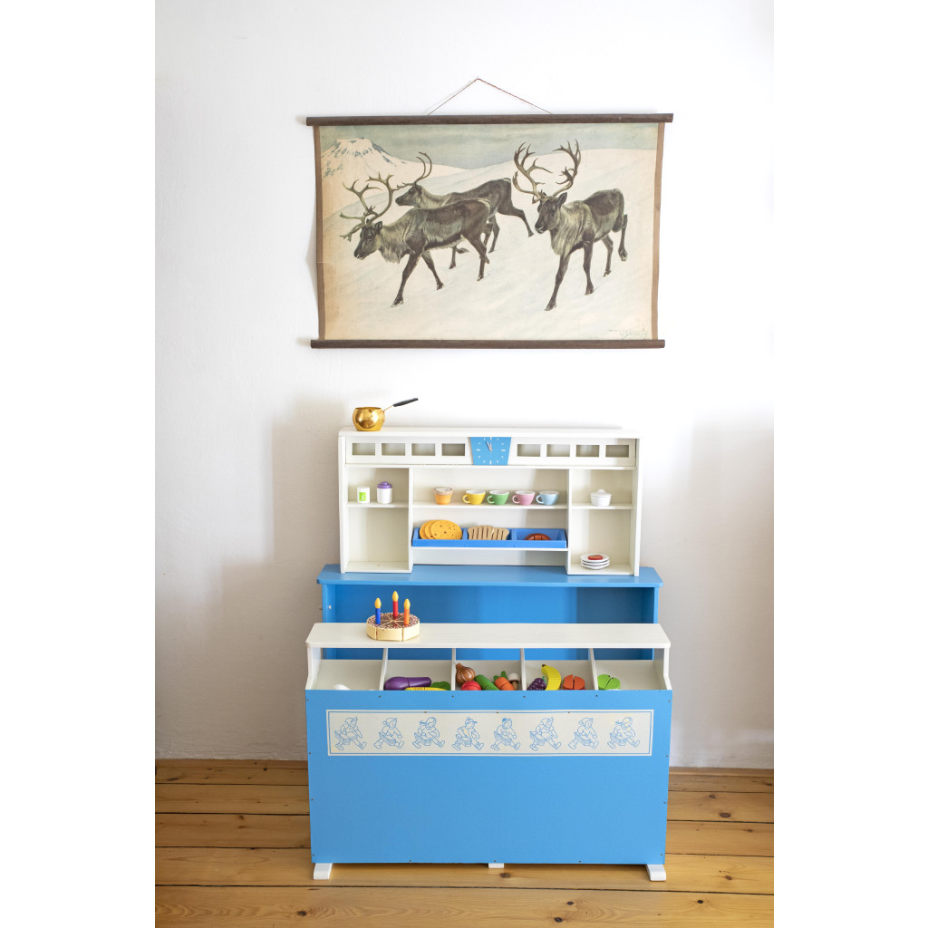 Univerzální dětský pultík z 60. let, ideální pro hru na nákupy, kavárnu či vaření.
