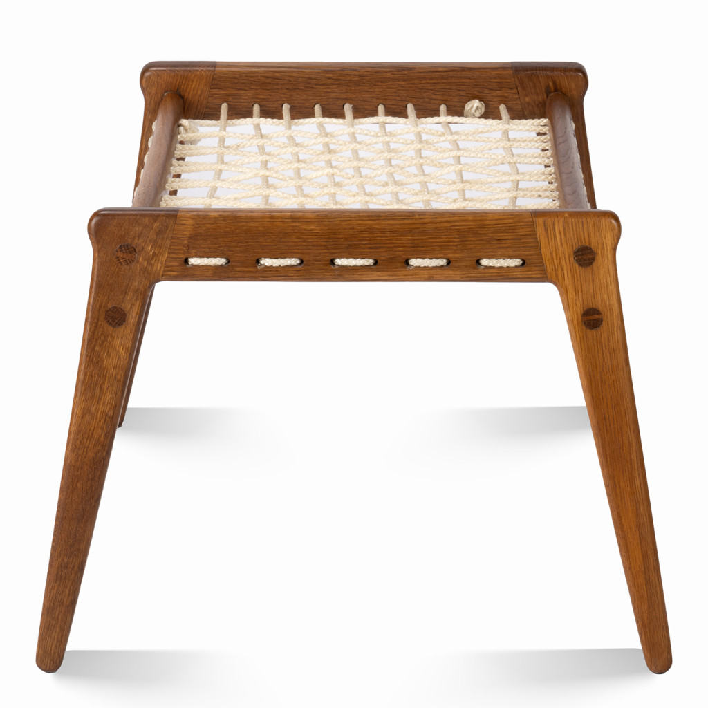 Dřevěná podnožka od východoněmeckého výrobce nábytku VEB möbelwerk Naumburg. Podnožka je vyrobena z dubového masivního dřeva a vypletená silným provazem.