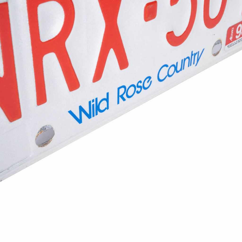 Sběratelská registrační značka kanadské provincie Alberta se sloganem “Wild Rose Country” z roku 1993. Divoká růže je od roku 1930 oficiálním květinovým symbolem Alberty. Roste téměř po celém území a krajinu rozjasňuje růžovými květy. Značka je z bíle lakovaného hliníkového plechu s modrým a červeným nápisem. Je ve velmi dobrém původním stavu s pouze drobnými oděrky, zadní strana má jemnou patinu.