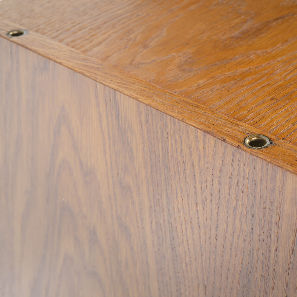 Skříňka U-460 je vhodná do jakékoliv místnosti, je skladná a poměrně lehká, takže se s ní snadno manipuluje. Je rozdělena na dvě části, úložný prostor s podélnou policí a část se čtyřmi šuplíky v šedé barvě s černými úchytkami. Skříňka má dýhovaný (dub) povrch. Podnož je vyrobená ze smrkového masivu. Postup renovace jsme konzultovali s Jiřím Jiroutkem, od kterého máme od roku 2018 také výhradní právo na obnovu výroby celé řady U-450.