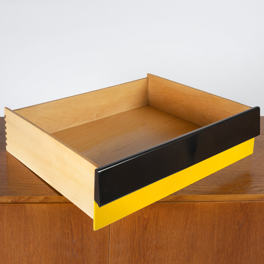 Skříňka pocházející ze slavné série Universal (U-450), kterou navrhl v roce 1958 pro československý národní podnik Interiér Praha designér Jiří Jiroutek.