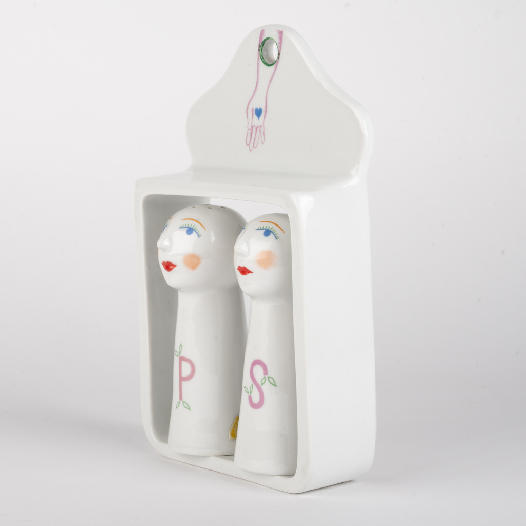 Půvabná dvojice slánky a pepřenky z 80. let navržená českou sochařkou a keramičkou Jindrou Vikovou a vyrobená porcelánkou Royal Dux Bohemia v Duchcově. Viková studovala na Vysoké škole uměleckoprůmyslové v ateliéru keramiky u prof. Otto Eckerta. V roce 1975 navrhla spolu se sochařem Petrem Orieškem mozaiku pro Staroměstskou radnici v Praze. Věnuje se především keramické a porcelánové tvorbě, digitální koláži a asambláži a konceptuálnímu umění. Její díla tvoří součást mnoha tuzemských i evropských muzeí a sbírek.