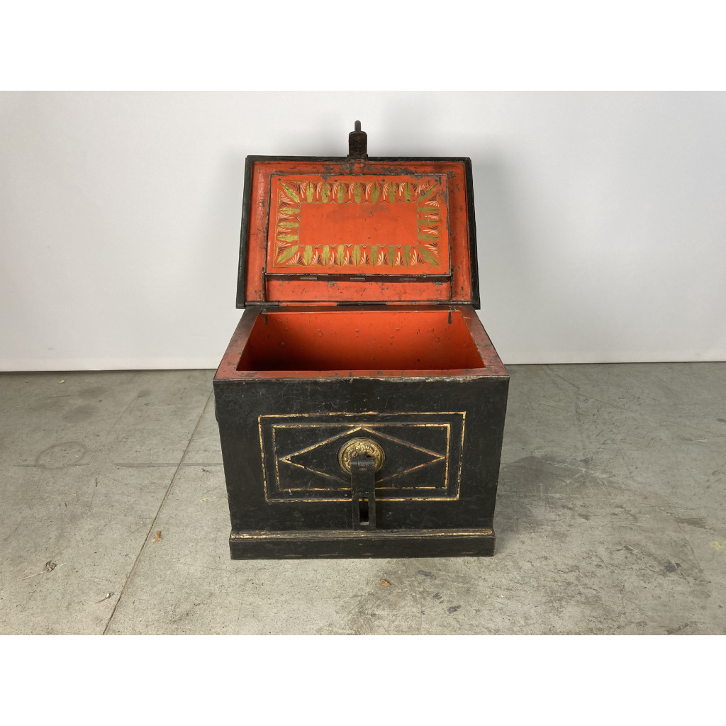 Železná truhla z 19. století. Odklápěcí víko má z vrchní části krytý zámek se šesti západkami. Kasa se dá zajistit i visacím zámkem. Vnitřek je natřen sytě červenou barvou a na spodní straně víka jsou zlaté florální motivy. Klíč na zámek chybí.